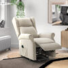 Mecanismo: Relax 2 motores + powerlift. Inclinación horinzontal 180º, función cama. Armazón: Madera maciza con escuadras reforzadas. Suspensión: Muelles zig-zag entrelazados y cincha de alta resistencia en el respaldo. Asiento: Bloque de espuma de poliuretano de 28 Kg./m3 Respaldo: Fibra y espuma poliuretano de 18 Kg./m3. Tapizado ZAR (waterproof): Gris oscuro y beige.Medidas: Ancho: 73 cms. Fondo: 90 cms.. Alto: 110 cms.Medida abierto: 175 cms.